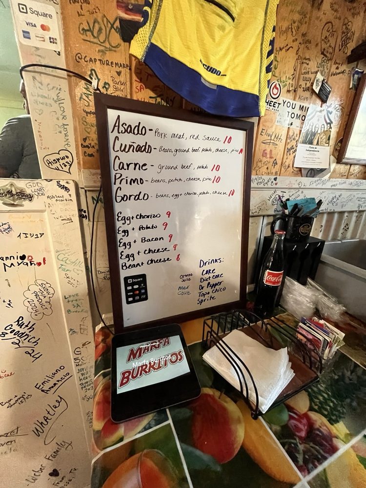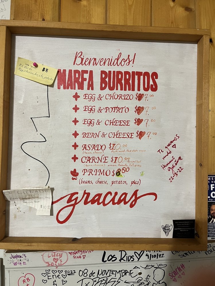 Marfa Burrito Menu