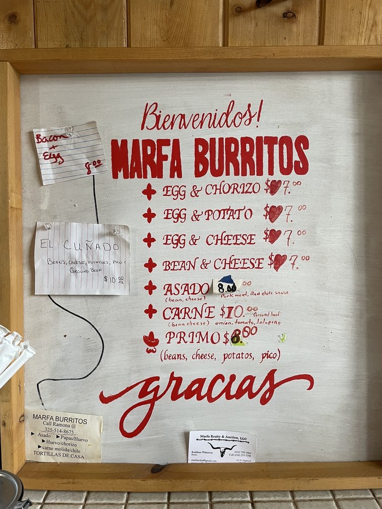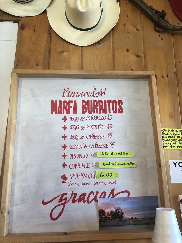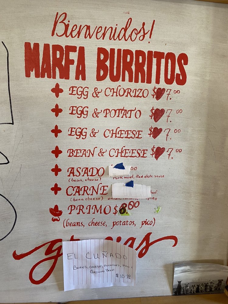 Marfa Burrito offers a unique breakfast and brunch experience in Marfa, Texas. With its diverse menu of burritos, including the popular Primo with jalapeños for a spicy kick, this eatery caters to vegetarians and meat lovers alike. The hand-made tortillas and flavorful ingredients make for a satisfying meal, perfect for sharing with friends or family. The casual, divey ambiance with indoor and outdoor seating adds to the charm of this hidden gem. Customers rave about the excellent service and celebrity sightings, making Marfa Burrito a must-visit destination. Don't miss out on trying their delicious chorizo, egg, and cheese breakfast burrito, hailed as one of the best in town. Whether you're a local or just passing through, Marfa Burrito promises a memorable dining experience.